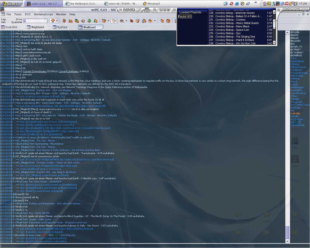 zu meinem mirc... ich verwend den std. skin vom nn-script... ich weiss is net sehr kreativ, aber ich hatte einfach keinen bock schon wieder solang an meinem mirc zu werkeln...
