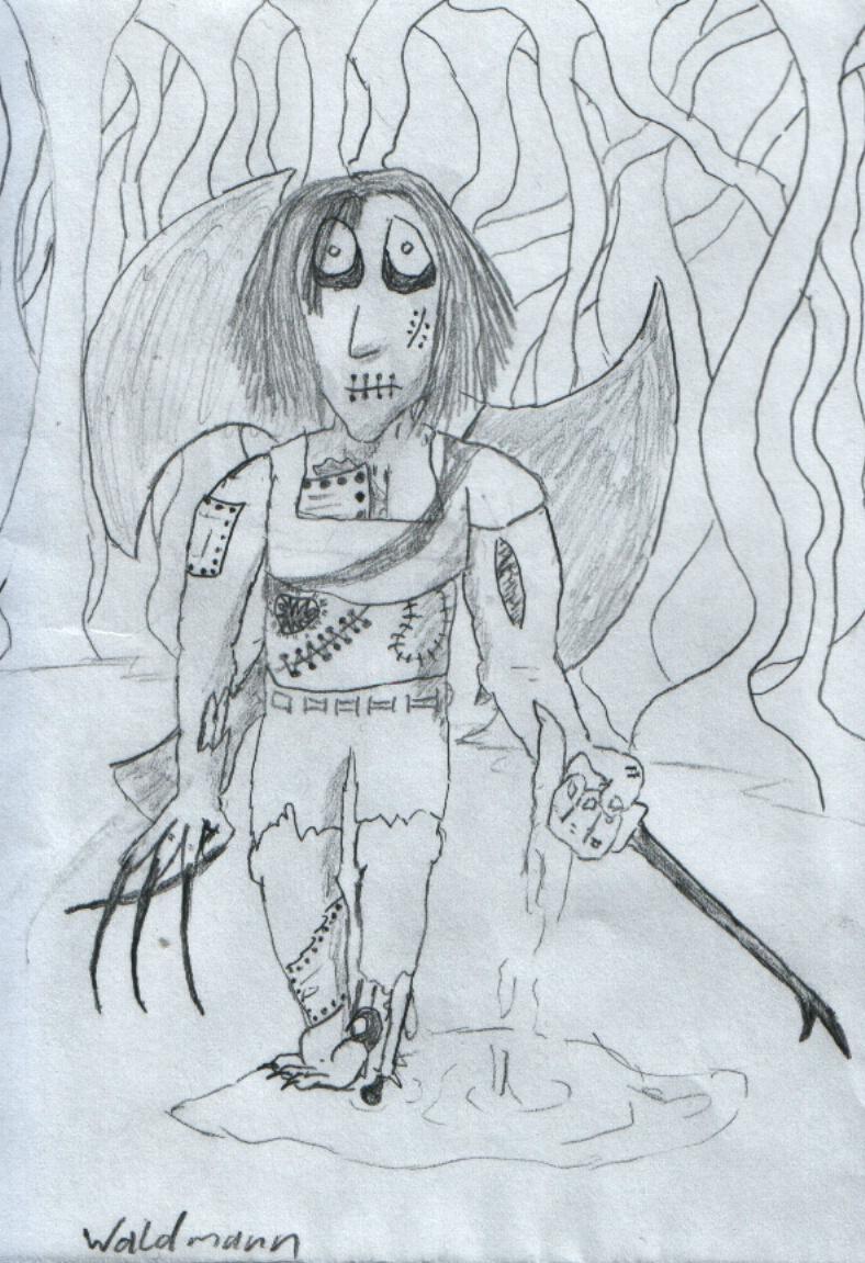 Der Waldmann ist eher aus Langeweile entstanden uns ist für mich trotz seiner Mäkel (Die Wunde am Arm ist nicht so überzeugen und das kaputte Bein wollte ich eigentlich etwas anders umsetzen) eines meiner Lieblingsbilder, weil es eben auch eines meiner Ersten war, bei denen es mir gelungen ist, ein recht zerissenes und verletztes Aussehen hinzu bekommen.