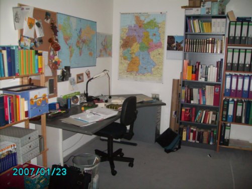Hm, ich weiß nich mehr genau wie die anderen Zimmer aussahen, aber es gibt doch etwas, was ich speziell in dem Zimmer nicht gefunden habe und über was man zu meiner Zeit noch häufiger gestolpert ist - Bücher! Diese alten häßlichen Schinken ohne USB-Anschluss und WinXP-Kompatibilität.