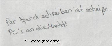 wenn es wichtigeres is schreib ich aber meist in druckbuchstaben, damit mans noch etwas besser lesen kannWe are the Borg!