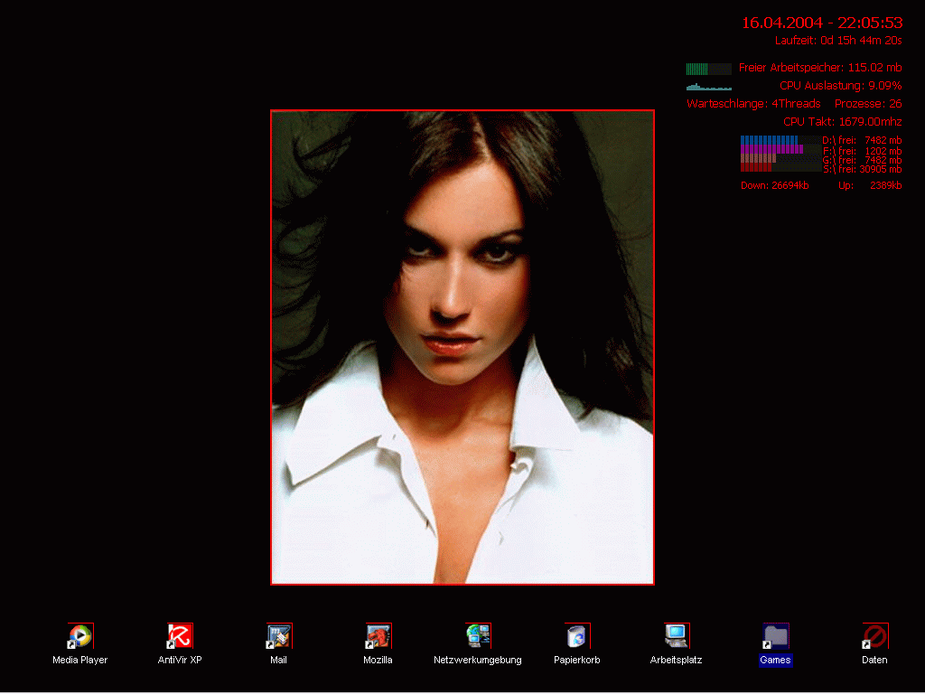 Mir kam da irgendwann mal eine Meldung von wegen, es ist nicht genug Speicher auf C: frei. Da musste ich dann was vom Desktop löschen ;-/. Animiert habe ich den Desktop, weil es doch so niedlich aussieht, wie sich die Schildkröte dreht =^.^=.