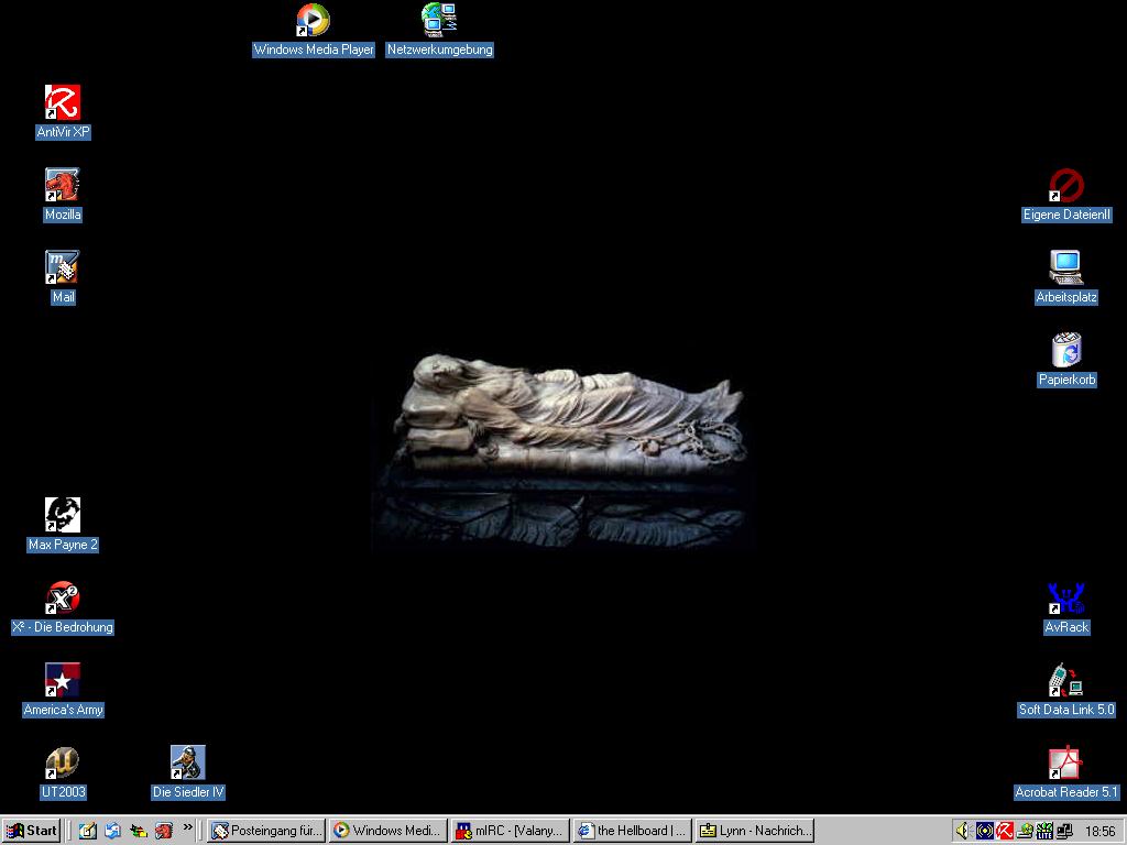 Ich hatte mal n ganze 4 MOnate oder so nur schwarzen hintergund. Und mir wurds nich oede. Irgendwie mag ich schwarz![]()